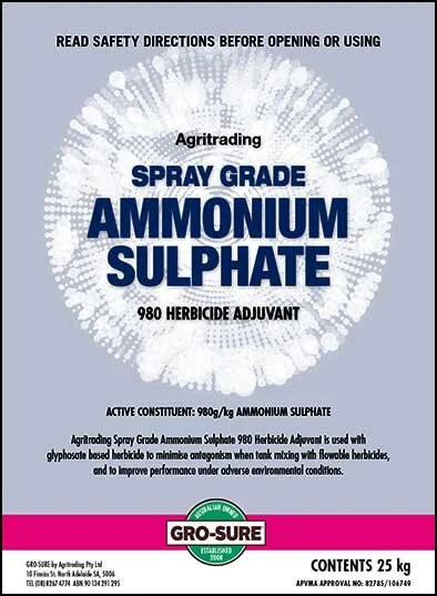 Apparent Pty Ltd Address. Ammonium Sulphate may be corrosive to metal parts of the sprayer. SPRAY GRADE AMMONIUM SULFATE SPRAY ADJUVANT INGREDIENTS Ammonium Sulfate995 Water05 See Back Panel for proper procedures in the event of skin or eye contact and proper handling.