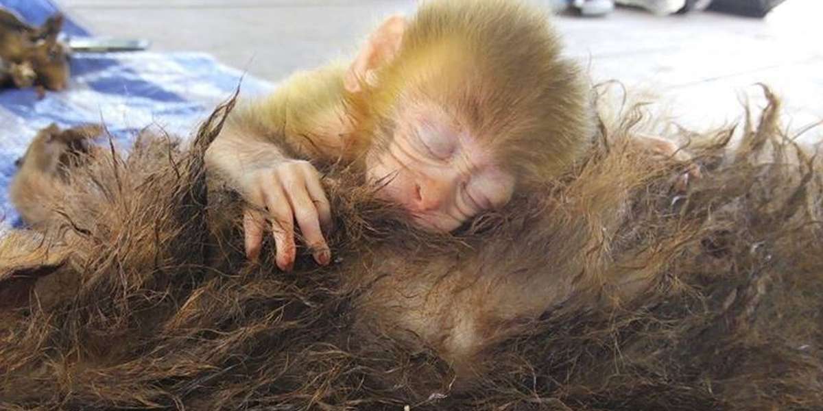 Baby Monkey Mourns Her Dead Mother on Roadside. The mother rhesus macaque was shot and killed by a poacher in Thailand last June and a wildlife official caught the poacher red-handed. In this shocking video the baby monkey is held upsidedown and then slapped in the face 12 Here the infant primate is threatened with pliers and appears to become distressed at the sight of the tool.